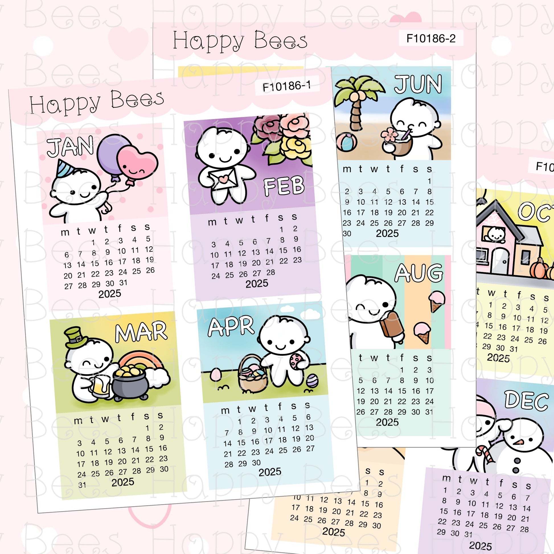 2025 Mini Calendar Doodles - Cute Functional Hobonichi Cousin Planner Stickers F10186