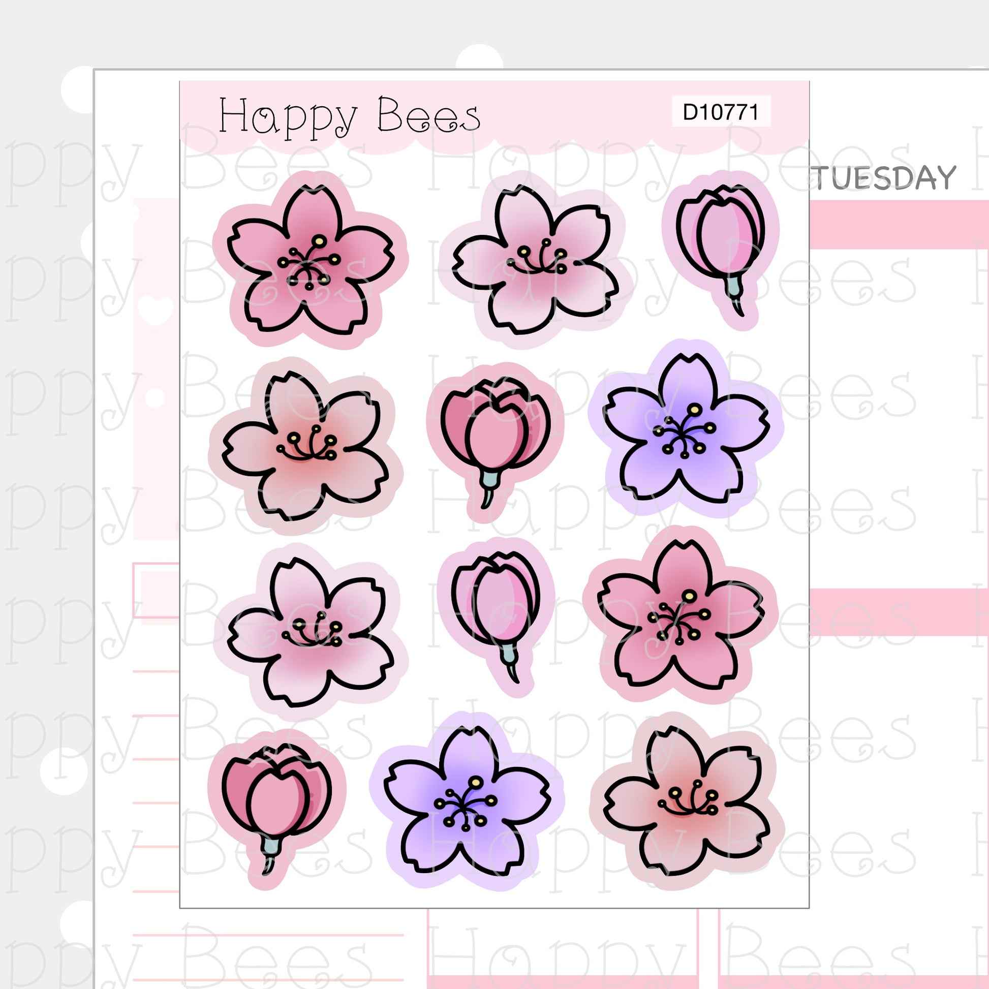 Cherry Blossom Flower Doodles - Cute Floral Journal Planner Stickers D10771