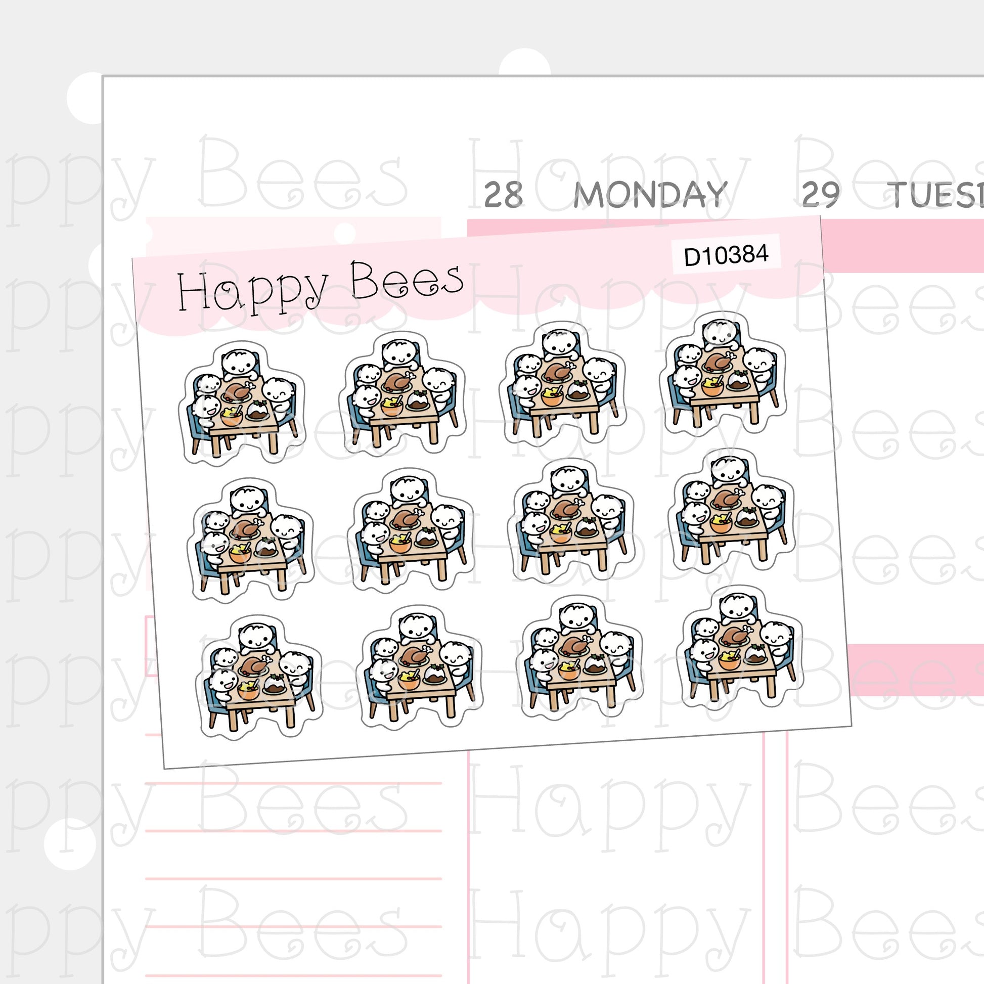Christmas Family Feast Doodles - Cute Winter Holiday Planner Stickers D10384