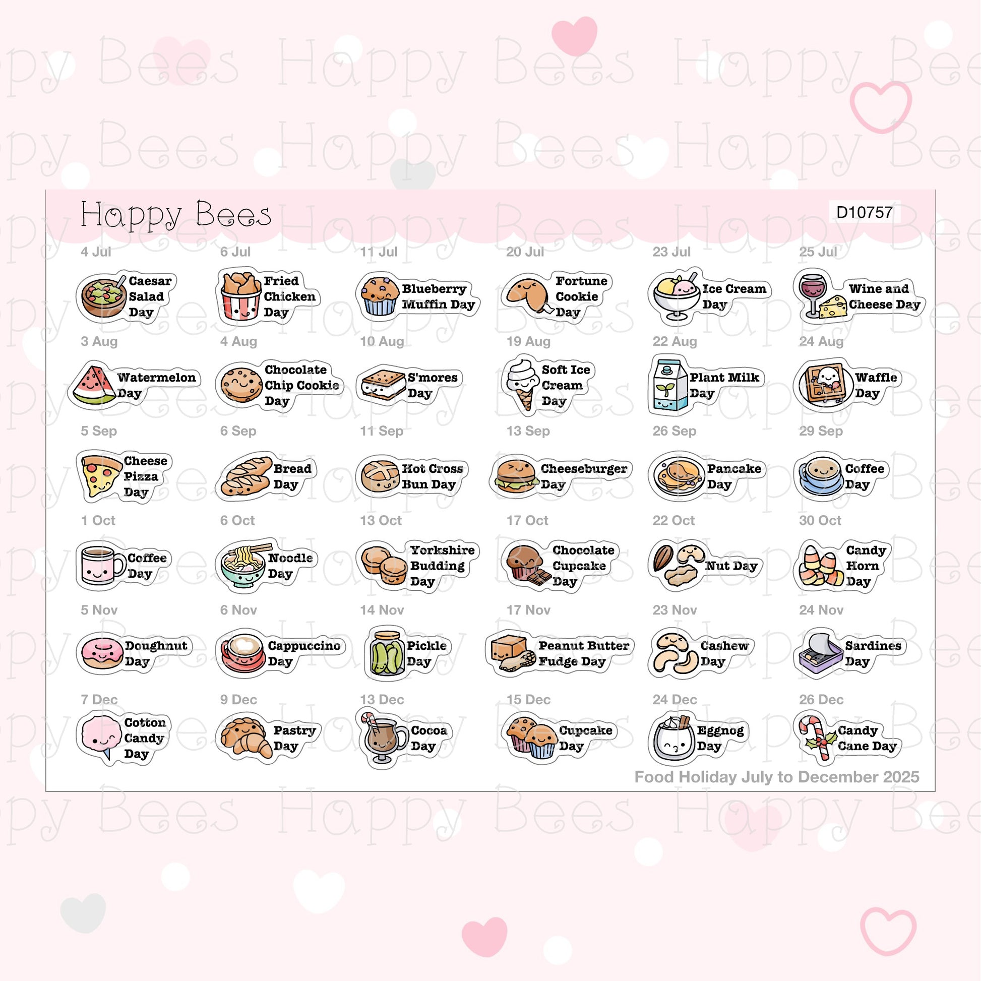 Food Holiday Doodles / July to December 2025 - Cute Festival Planner Stickers D10757
