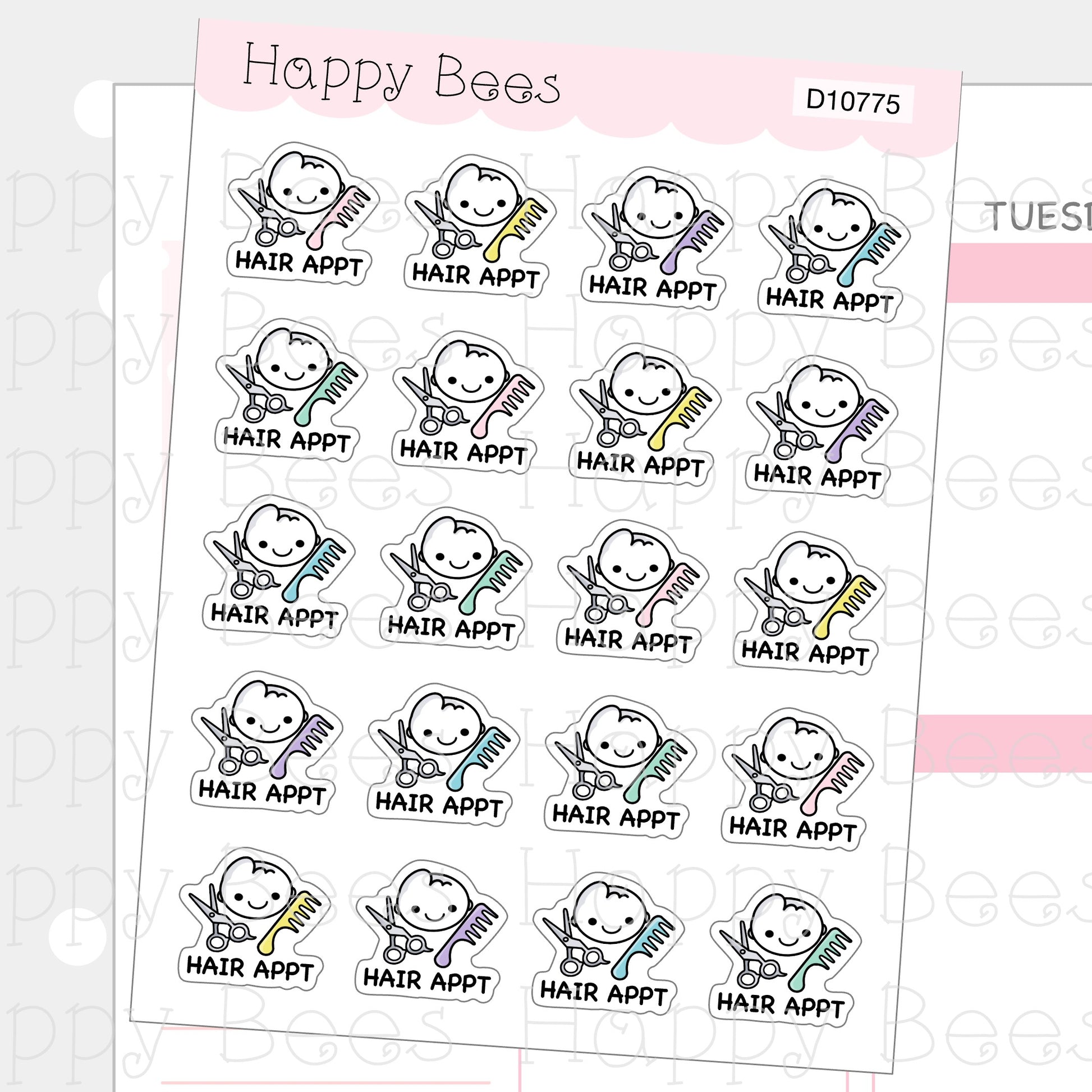 Hair Appointment Doodles - Cute Self Care Planner Stickers D10775