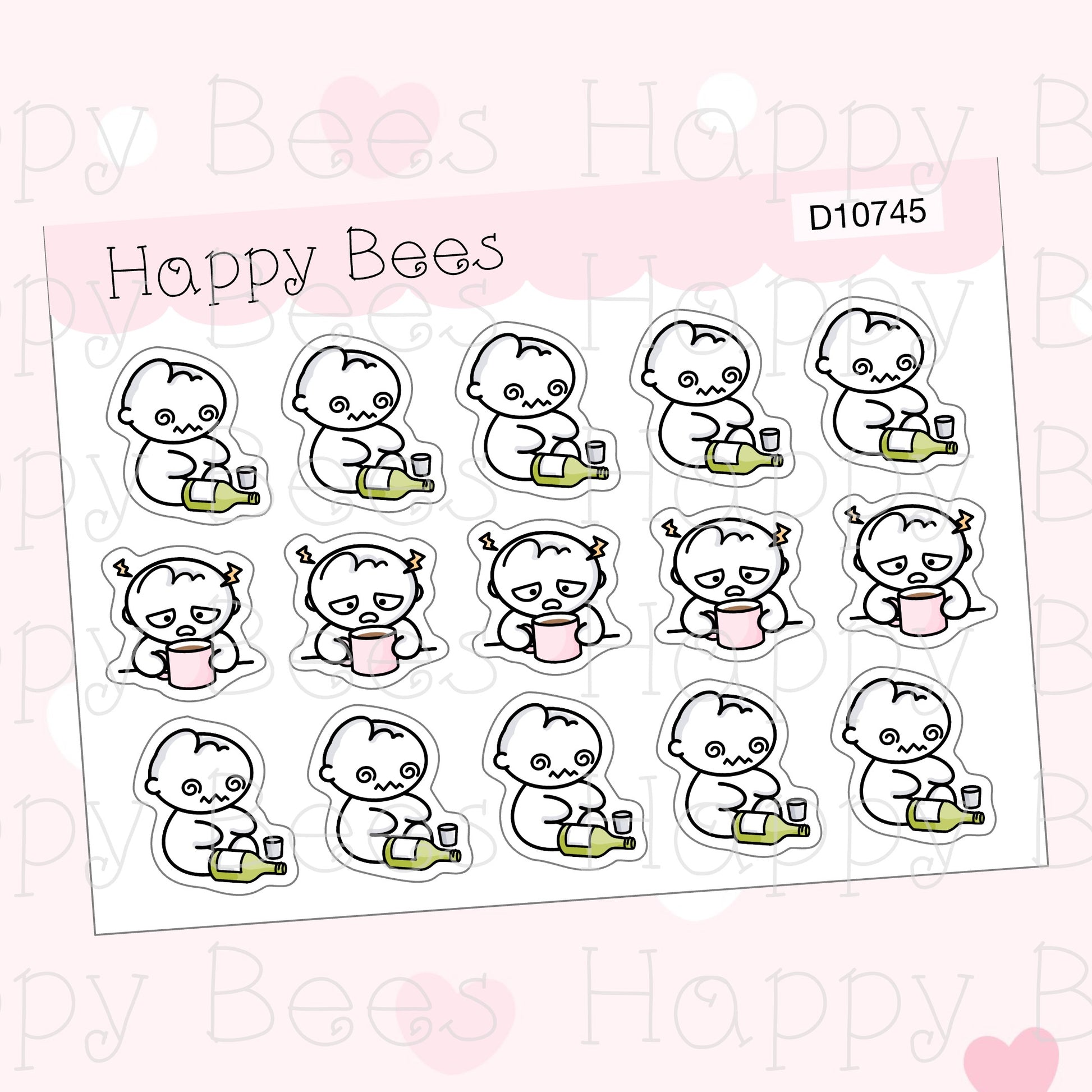 Hangover Doodles - Cute Drunk Alcohol Upset Mood Planner Stickers D10745