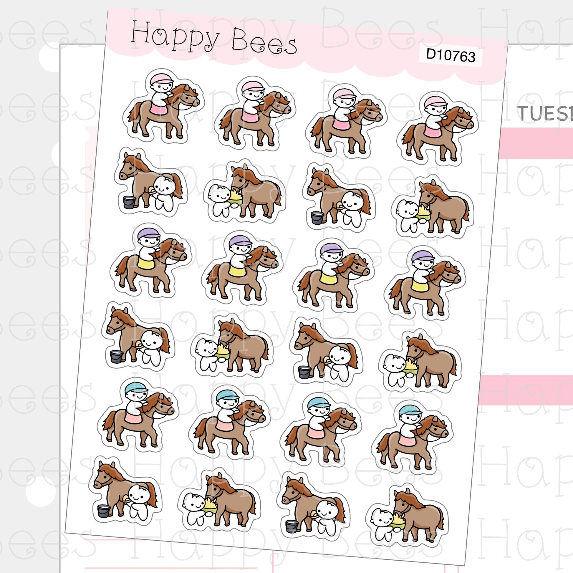 Horse Riding & Care Doodles - Cute Pet Food Planner Stickers D10763