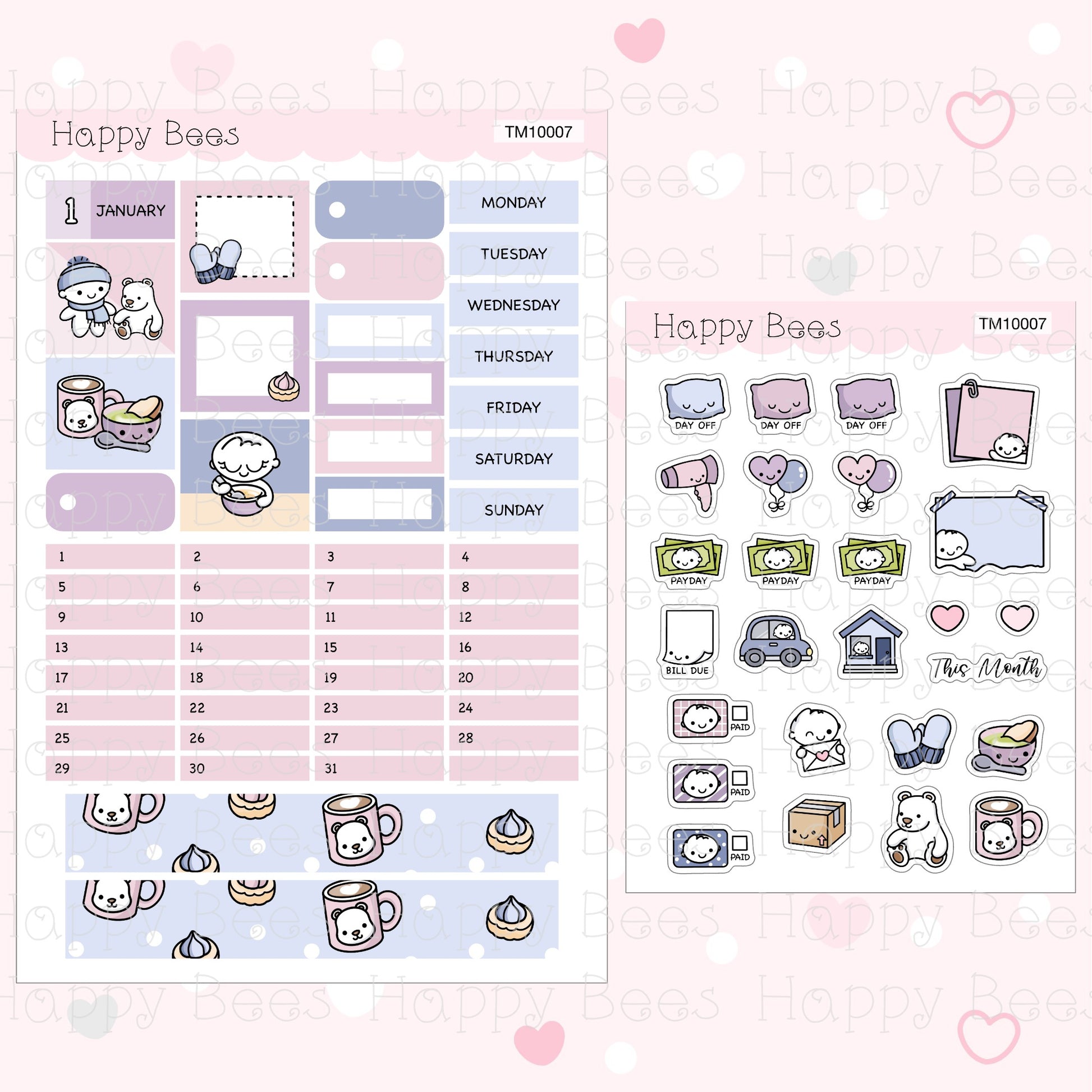 Hand drawn planner stickers for Hobonichi Cousin planners, any other journals or notebooks.
