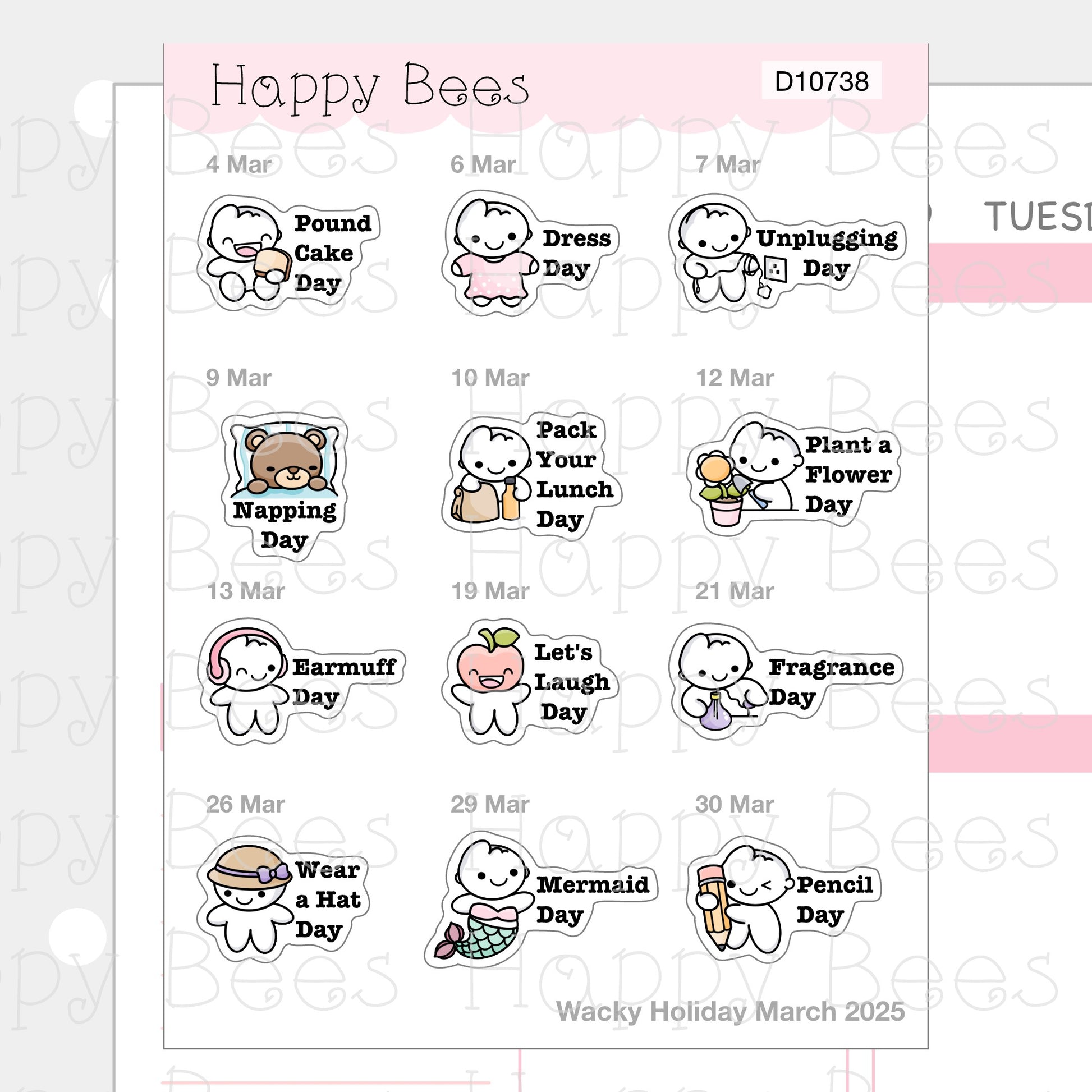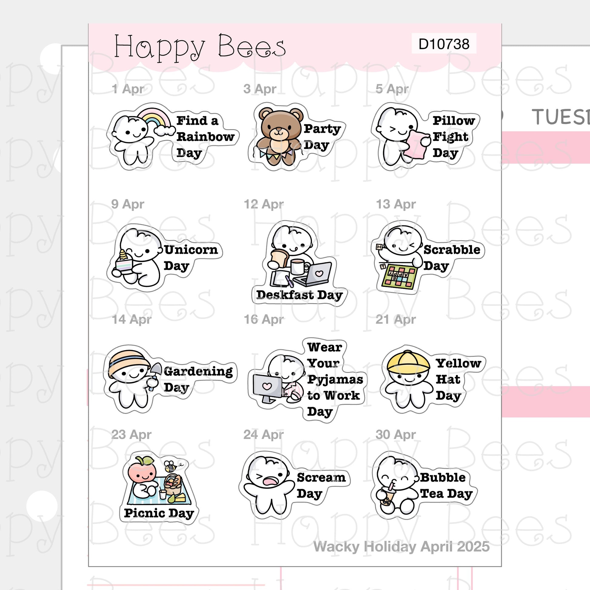 Wacky Holiday Doodles / January to June 2025 - Cute Journal Planner Stickers D10737-739