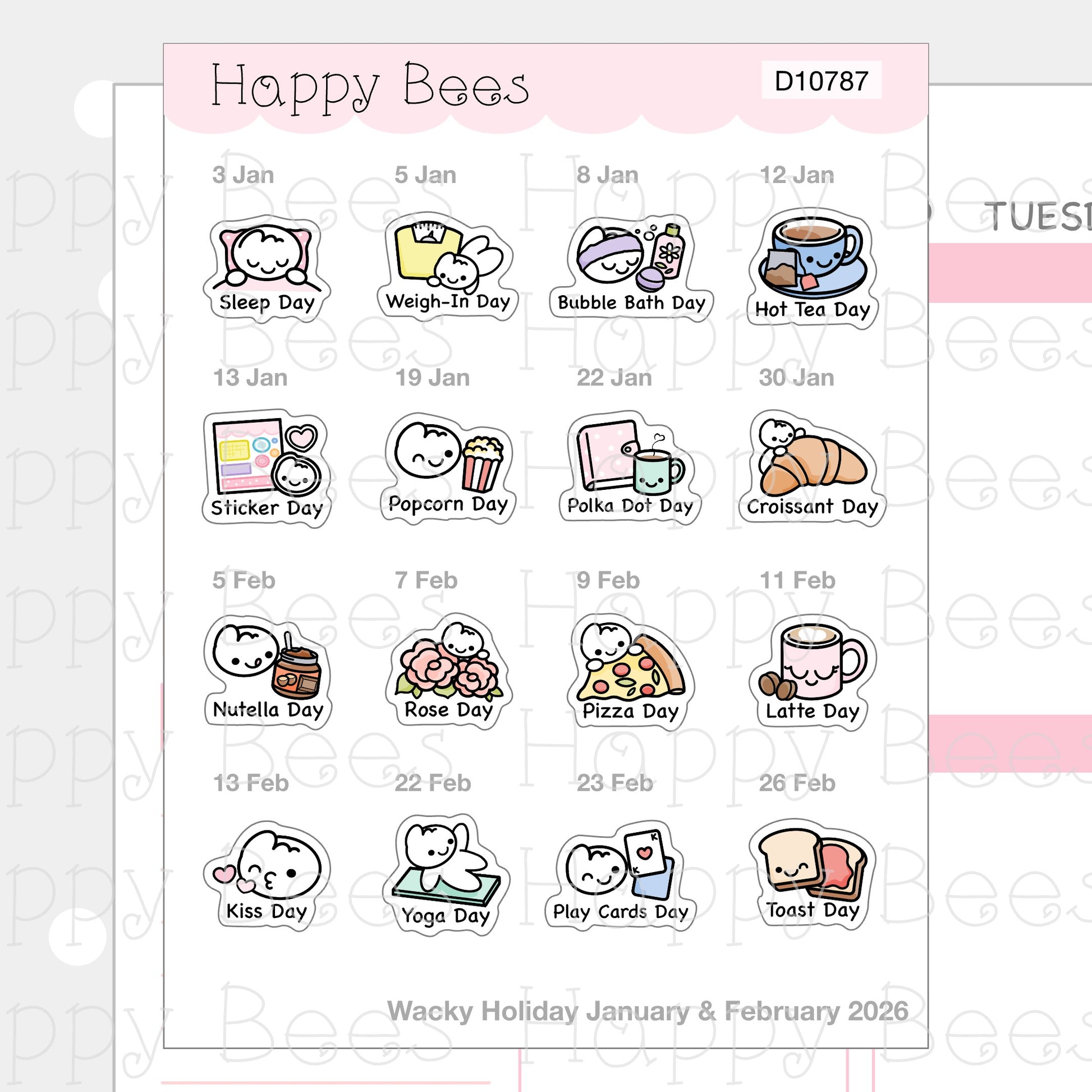 Wacky Holiday Doodles / January to June 2026 - Cute Journal Planner Stickers D10787-789